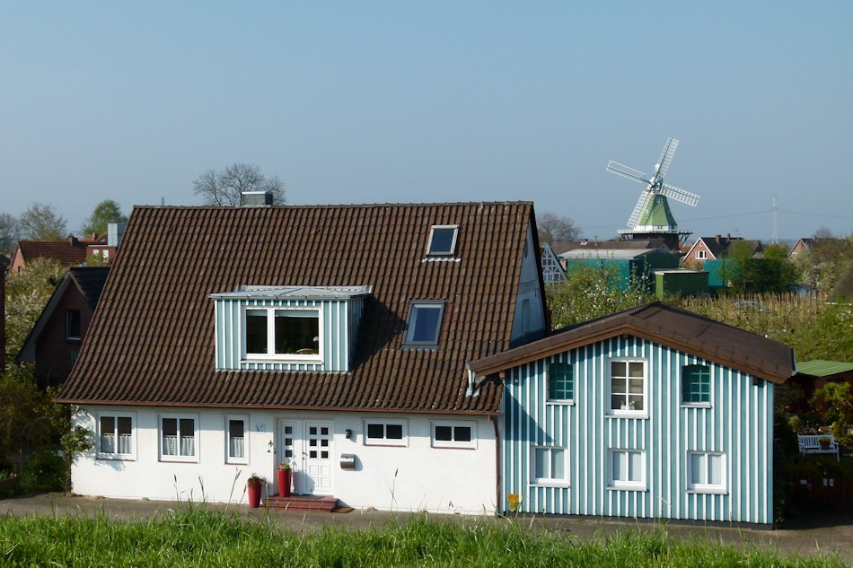 Blick auf's Haus vom Elbdeich